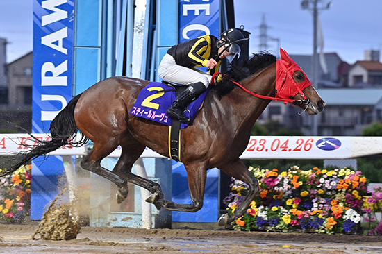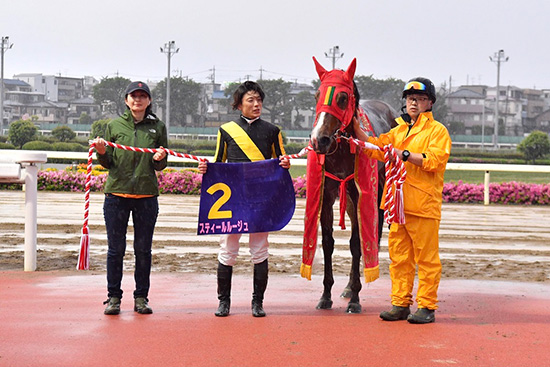 4月26日(水)に浦和競馬場で行われた重賞「第61回しらさぎ賞(SIII)」は、船橋・張田京厩舎所属のスティールルージュ号が優勝しました。